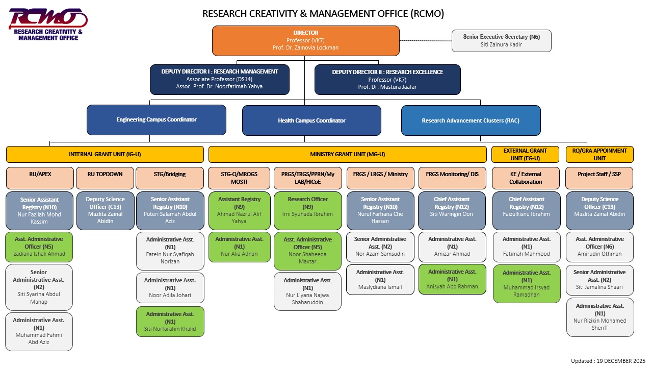 ORGANIZATIONAL CHART OF RESEARCH CREATIVITY & MANAGEMENT OFFICE (RCMO)